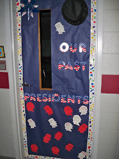 The following 4 pictures are all for one classroom....first one starts...feet walk across wall to other door...last picture is the "finish line".